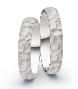 Prachtige witgouden trouwringen. De ringen zijn afgwerkt met een hammermat structuur. De ring is 4 mm breed en 1,5 mm dik. De natuurlijke schoonheid en betekenis van hammermat geeft de ringen een tijdloze uitstraling. Ze zijn niet alleen een prachtige accessoire op je trouwdag, maar zullen ook jarenlang een dierbare herinnering blijven.