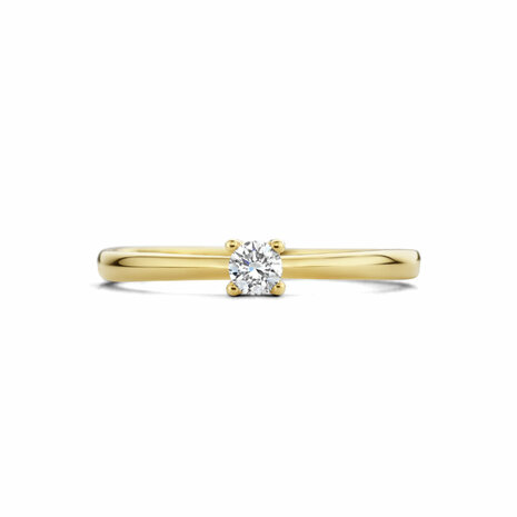 14k Geelgouden ring uitgevoerd met een schitterende diamant.