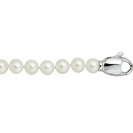 Gerhodineerd zilveren armband van zoetwaterparels. De schakelbreedte is 6.0mm. De parel heeft een gemiddelde maat van 6-7mm.