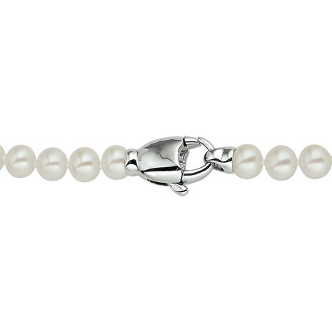 Gerhodineerd zilveren collier met zoetwaterparels. De parel heeft een gemiddelde maat van 5-6mm.