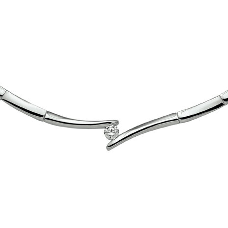 Gerhodineerd zilveren choker collier met zirkonia. De schakelbreedte is 4.0mm.