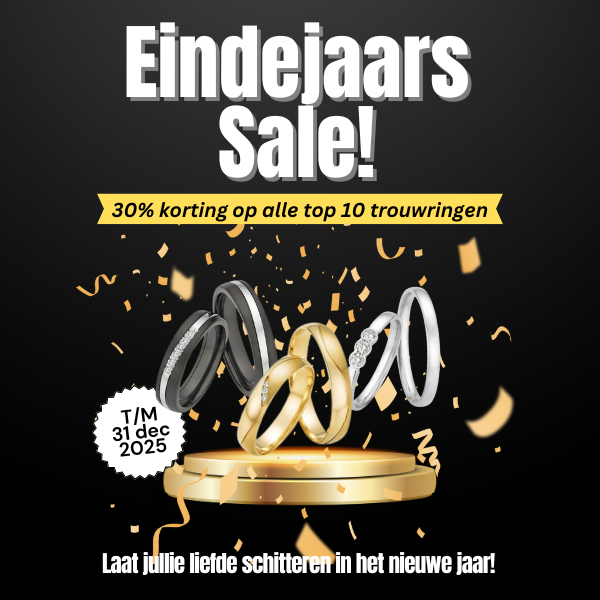 Ga jij binnenkort trouwen en ben je nog op zoek naar een paar prachtige trouwringen? Of op zoek naar een paar vriendschapsringen of verlovingsringen? Profiteer van onze Einde Jaars Sale!