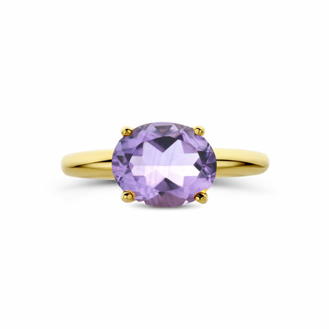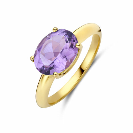 14k Geelgouden ring uitgevoerd met amethist. De ring heeft een afmeting van 10x8mm.