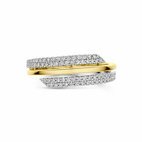 14k Bicolor geel en witgouden ring uitgevoerd met diamant. De ring heeft een breedte van 7mm. Het totale diamantgewicht is 0.40ct.