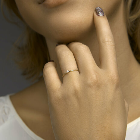14k Bicolor geel- en witgouden ring uitgevoerd met een schitterende diamant. De ring heeft een breedte van 2.5mm.