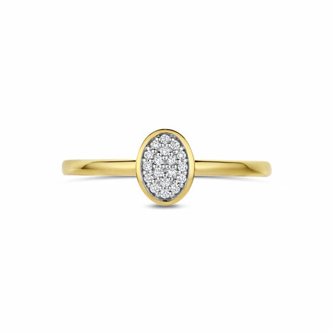 14k Geelgouden ring uitgevoerd met diamant. De ring heeft een breedte van 7mm. Het totale diamantgewicht is 0.06ct.