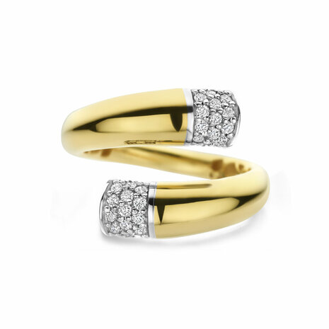 14k Bicolor geel en witgouden ring uitgevoerd met diamant. De ring heeft een breedte van 16mm. Het totale diamantgewicht is 0.30ct.