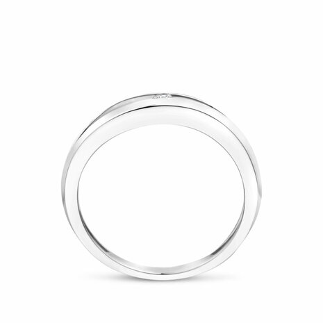 Gerhodineerd 925 zilveren ring uitgevoerd met lab grown diamant. De ring heeft een breedte van 6mm. Het totale diamantgewicht is 0.04ct.