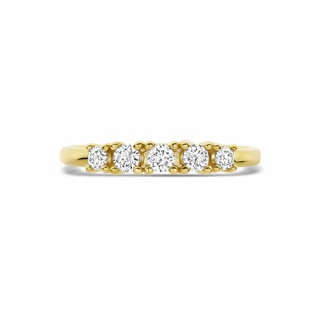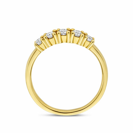14k Geelgouden ring uitgevoerd met lab grown diamant. De ring heeft een breedte van 3.5mm. Het totale diamantgewicht is 0.32ct. Onder extreem hoge druk en temperatuur wordt het natuurlijk ontstaansproces nagebootst met als eindresultaat een diamant met dezelfde chemische eigenschappen maar met een andere oorsprong.