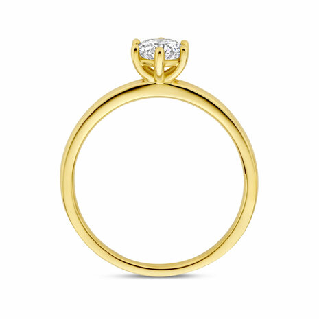14k Geelgouden ring uitgevoerd met lab grown diamant van 5mm. Het totale diamantgewicht is 0.50ct. Onder extreem hoge druk en temperatuur wordt het natuurlijk ontstaansproces nagebootst met als eindresultaat een diamant met dezelfde chemische eigenschappen maar met een andere oorsprong.