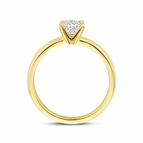 14k Geelgouden ring uitgevoerd met lab grown diamant. De steen heeft een diameter van 5.9mm. Het totale diamantgewicht is 0.75ct. Lab grown diamanten zijn diamanten die ontstaan in een laboratorium. Onder extreem hoge druk en temperatuur wordt het natuurlijk ontstaansproces nagebootst met als eindresultaat een diamant met dezelfde chemische eigenschappen maar met een andere oorsprong.