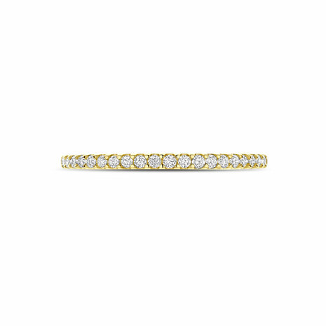 14k Geelgouden ring uitgevoerd met een lab grown diamant met een totaalgewicht van 0.15ct. De ring heeft een breedte van 1.5mm. Lab grown diamanten zijn diamanten die ontstaan in een laboratorium. Onder extreem hoge druk en temperatuur wordt het natuurlijk ontstaansproces nagebootst met als eindresultaat een diamant met dezelfde chemische eigenschappen maar met een andere oorsprong.