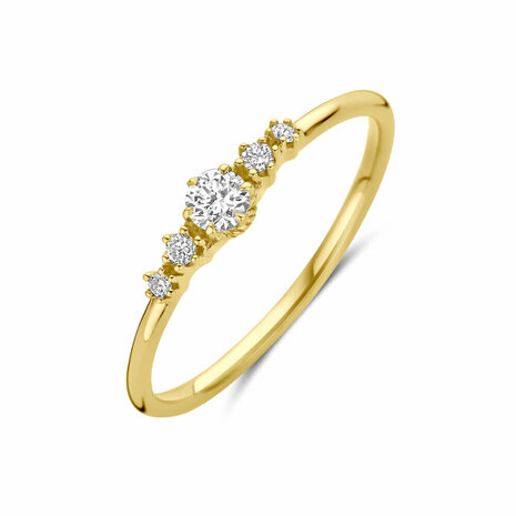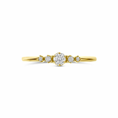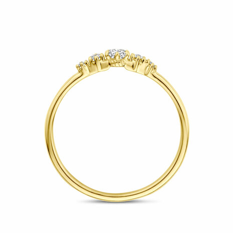 14k Geelgouden ring uitgevoerd met lab grown diamanten. De ring heeft een breedte van 4mm en het totale diamantgewicht is 0.20ct.