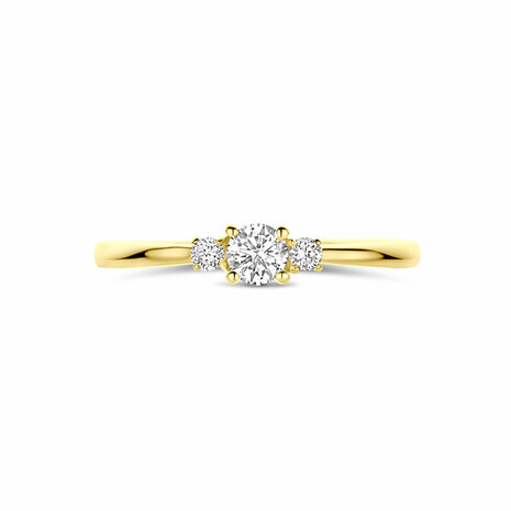 14k Geelgouden ring uitgevoerd met een lab grown diamant met een totaalgewicht van 0.25ct. Lab grown diamanten zijn diamanten die ontstaan in een laboratorium. Onder extreem hoge druk en temperatuur wordt het natuurlijk ontstaansproces nagebootst met als eindresultaat een diamant met dezelfde chemische eigenschappen maar met een andere oorsprong.
