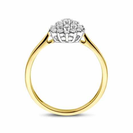 14k Bicolor geel- en witgouden ring uitgevoerd met een lab grown diamant met een totaalgewicht van 0.33ct. Lab grown diamanten zijn diamanten die ontstaan in een laboratorium. Onder extreem hoge druk en temperatuur wordt het natuurlijk ontstaansproces nagebootst met als eindresultaat een diamant met dezelfde chemische eigenschappen maar met een andere oorsprong.