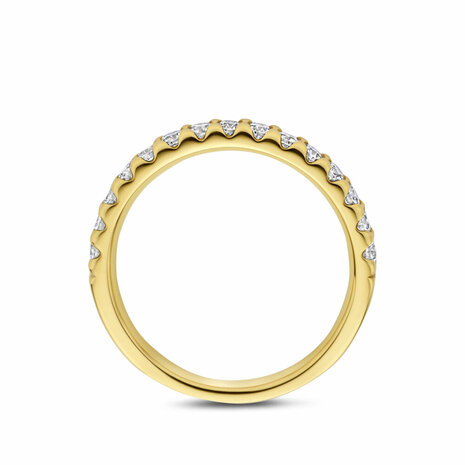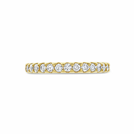 14k Geelgouden ring uitgevoerd met lab grown diamant. De ring heeft een breedte van 2.5mm. Onder extreem hoge druk en temperatuur wordt het natuurlijk ontstaansproces nagebootst met als eindresultaat een diamant met dezelfde chemische eigenschappen maar met een andere oorsprong.