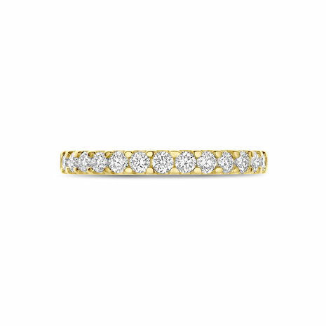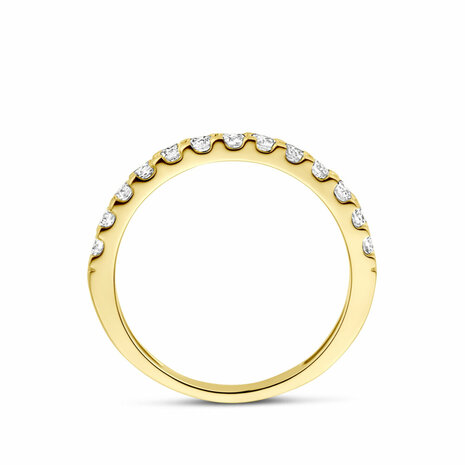 14k Geelgouden ring uitgevoerd met een lab grown diamant met een totaalgewicht van 0.50ct. De ring heeft een breedte van 2.5mm. Lab grown diamanten zijn diamanten die ontstaan in een laboratorium. Onder extreem hoge druk en temperatuur wordt het natuurlijk ontstaansproces nagebootst met als eindresultaat een diamant met dezelfde chemische eigenschappen maar met een andere oorsprong.