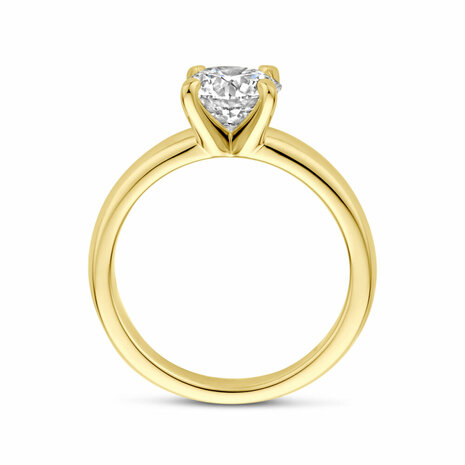14k Geelgouden ring uitgevoerd met lab grown diamant. De steen heeft een diameter van 7.4mm. Het totale diamantgewicht is 1.50ct. Lab grown diamanten zijn diamanten die ontstaan in een laboratorium. Onder extreem hoge druk en temperatuur wordt het natuurlijk ontstaansproces nagebootst met als eindresultaat een diamant met dezelfde chemische eigenschappen maar met een andere oorsprong.