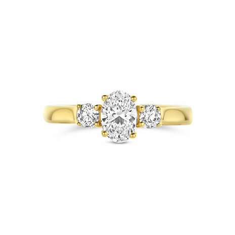 14k Geelgouden ring uitgevoerd met lab grown diamant. Het totale diamantgewicht van de ring is 0.99ct.