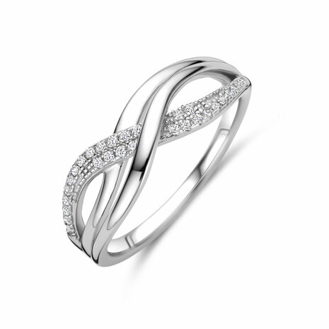 Gerhodineerd zilveren 925 ring uitgevoerd met zirkonia. De ring heeft een breedte van 7mm.