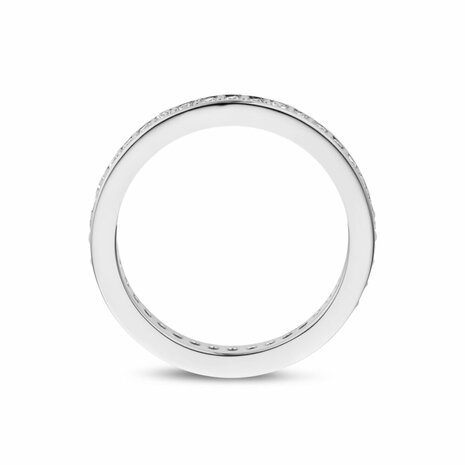 Gerhodineerd 925 zilveren ring uitgevoerd met zirkonia. De ring heeft een breedte van 2.5mm.