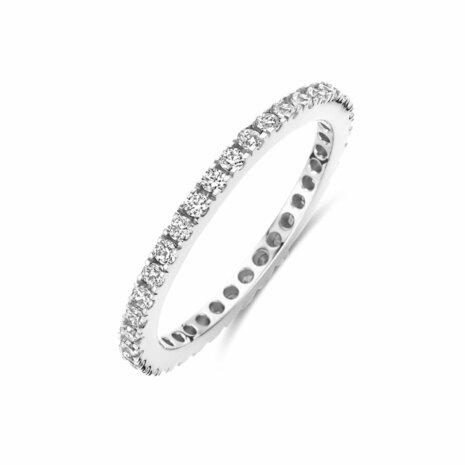Gerhodineerd 925 zilveren ring uitgevoerd met zirkonia. De ring heeft een breedte van 1.6mm.