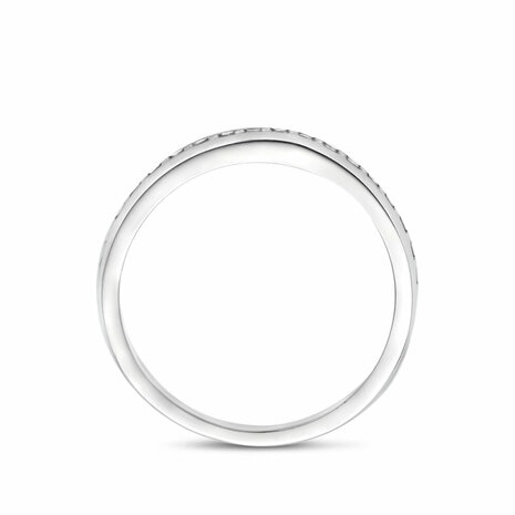 Gerhodineerd 925 zilveren ring uitgevoerd met zirkonia. De ring heeft een breedte van 4mm.