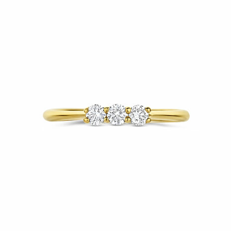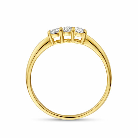 14k Geelgouden ring uitgevoerd met lab grown diamant. De ring heeft een breedte van 2.5mm. Het totale diamantgewicht is 0.24ct. Onder extreem hoge druk en temperatuur wordt het natuurlijk ontstaansproces nagebootst met als eindresultaat een diamant met dezelfde chemische eigenschappen maar met een andere oorsprong.