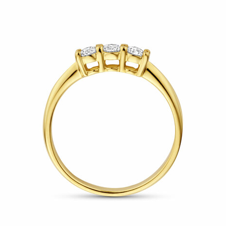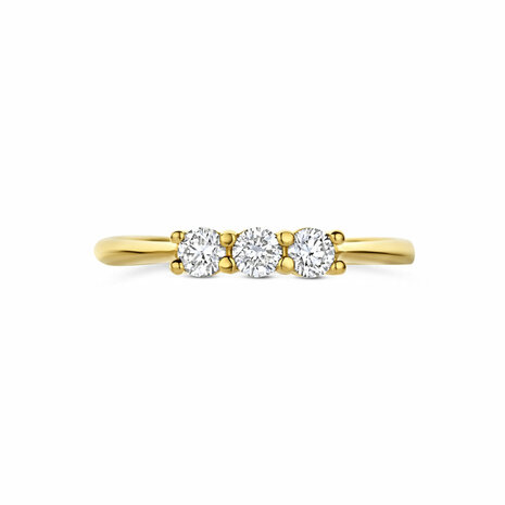 14k Geelgouden ring uitgevoerd met lab grown diamant. De ring heeft een breedte van 3mm. Het totale diamantgewicht is 0.30ct. Onder extreem hoge druk en temperatuur wordt het natuurlijk ontstaansproces nagebootst met als eindresultaat een diamant met dezelfde chemische eigenschappen maar met een andere oorsprong.