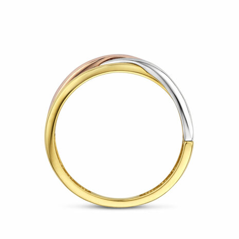 14k Tricolor wit, rosé en geelgouden ring. De ring heeft een breedte van 6mm.
