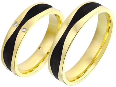 Trouwringen goud met carbon